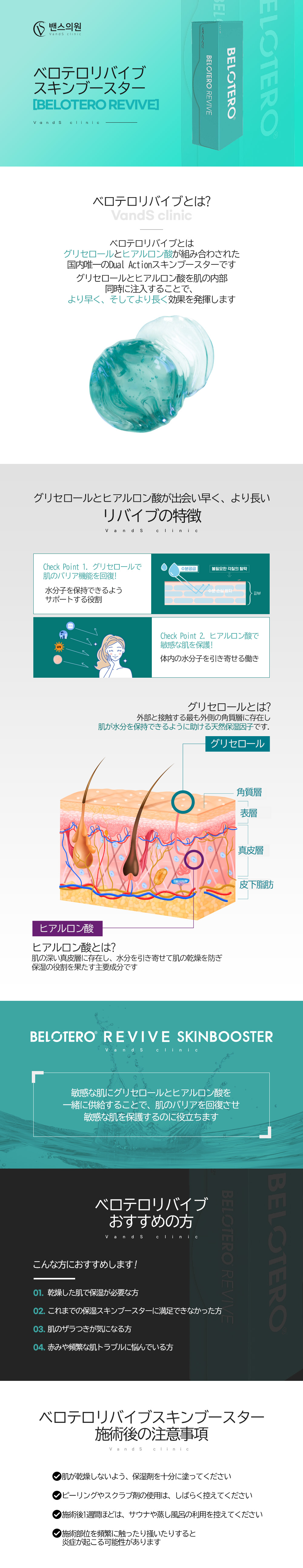 ベロテロ·リバイブ·スキンブースターは、皮膚真皮層に注入する医療機器で、マルツ固有の動的架橋技術(DCLT)を適用した多密度マトリックス(CPM)ヒアルロン酸(20mg/mL)が皮膚組織に均一に密着して自然な施術効 果を示し、天然保湿因子であるグリセロールはヒアルロン酸が引き寄せた水分子を維持できるように補助する役割をします。